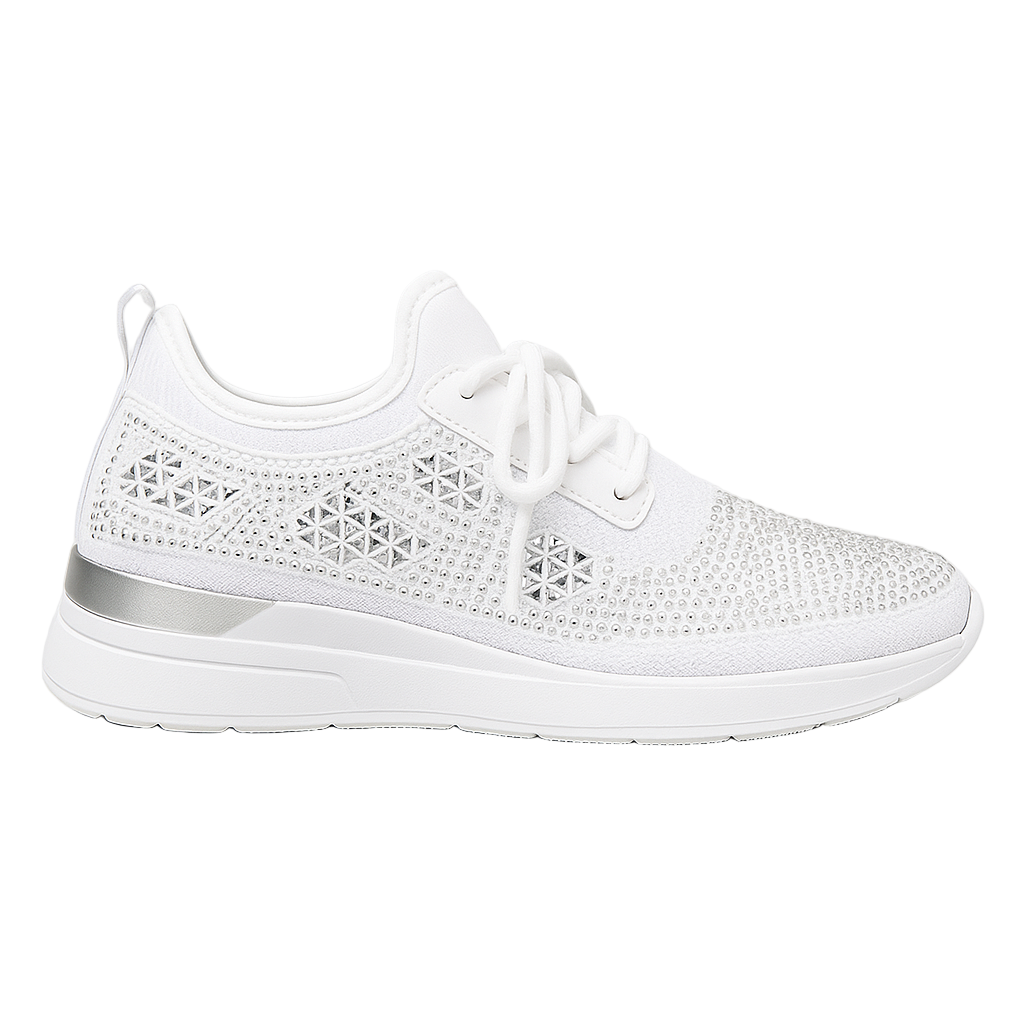 Giselle™ kombinerer ortopædisk støtte med et lyst, elegant udtryk. Den ergonomiske sål, svangstøtten og det åndbare overmateriale med strass giver langvarig komfort uden at gå på kompromis med stilen.