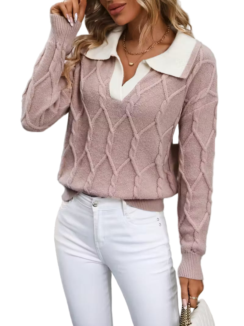MAHALIA™ – KABELSTRIKKET SWEATER MED KRAVE