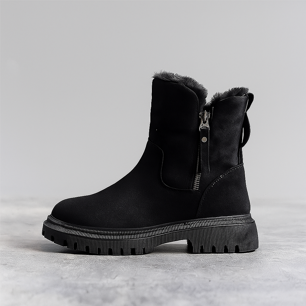 TEMA™ er skabt til at klare kolde dage med både komfort og elegance. Det bløde plysfor holder fødderne varme, mens den kraftige, skridsikre sål giver sikkerhed på alle underlag. Med lynlås i siden og premium ruskindsfinish er det det perfekte valg til en vinter med stil.