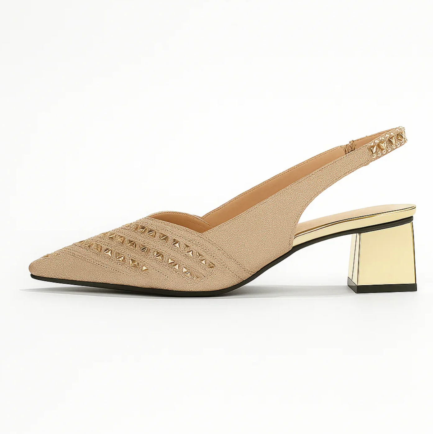 Slingback-design – Justerbar rem, der giver et sikkert og feminint fit.