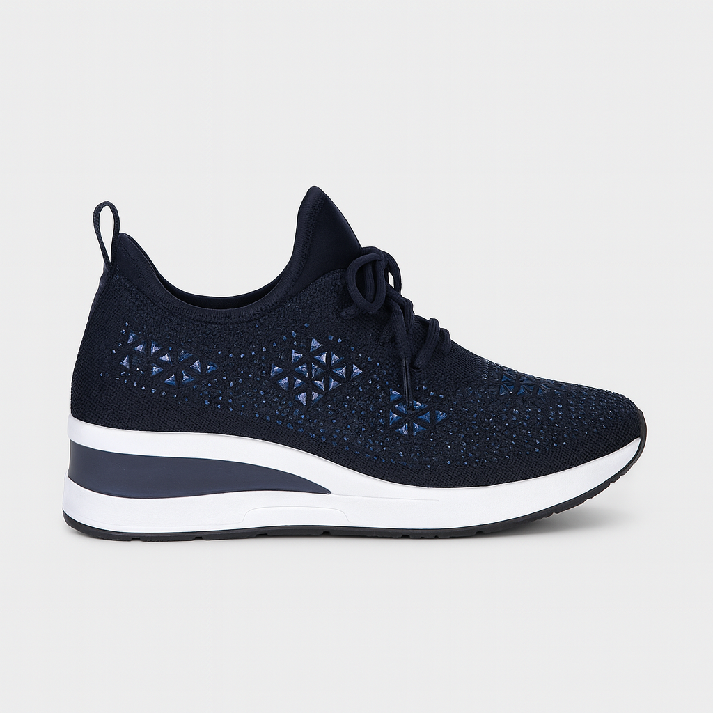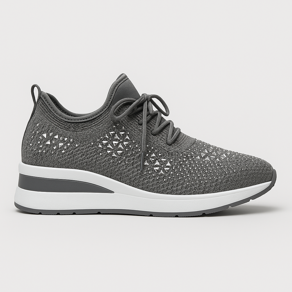 Giselle™ kombinerer ortopædisk støtte med et lyst, elegant udtryk. Den ergonomiske sål, svangstøtten og det åndbare overmateriale med strass giver langvarig komfort uden at gå på kompromis med stilen.