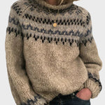 Nordic Warm™ er en striktrøje, der kombinerer en klassisk rund halsudskæring med en høj krave, som giver ekstra varme og et sofistikeret udtryk. Perfekt til både hverdag og særlige lejligheder i de kolde måneder.