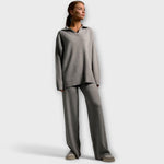 ANA™ er et sofistikeret striksæt, der kombinerer en oversize sweater og vide bukser for et forlængende, elegant udtryk. Den bløde strik omslutter kroppen behageligt, mens de rene linjer giver et poleret look — ideelt til lange dage, arbejde, rejser og afslappede øjeblikke med stil.