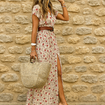 Romy™ er en smuk maxikjole med bohemeinspireret udtryk, designet til at fremhæve din naturlige silhuet. Den smockede talje giver en flatterende pasform, mens det lette stof gør den perfekt til både hverdag og sommerfester.
