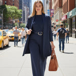 Tría™ samler tre nøglestykker, der fungerer hver for sig eller sammen: let cardigan, behagelig top og bukser med moderne fald. Det bløde materiale og den minimalistiske silhuet giver et poleret udtryk til hjemmet, kreativt arbejde eller en afslappet weekend.